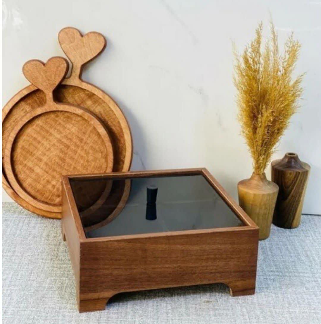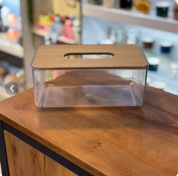 جا دستمال کاغذی شفاف چوبی