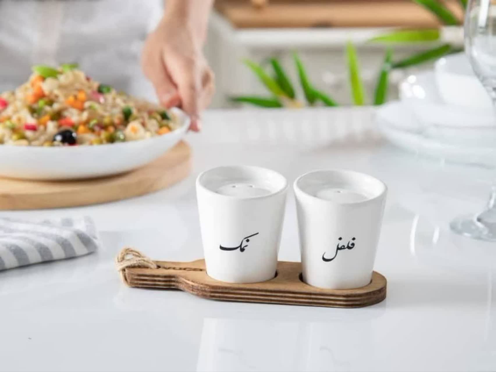 ست نمک و فلفل پاش سرامیکی پایه چوبی