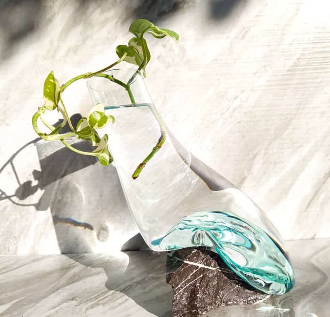 گلدان دفرمه سنگ و شیشه